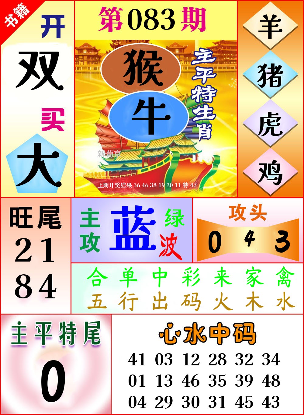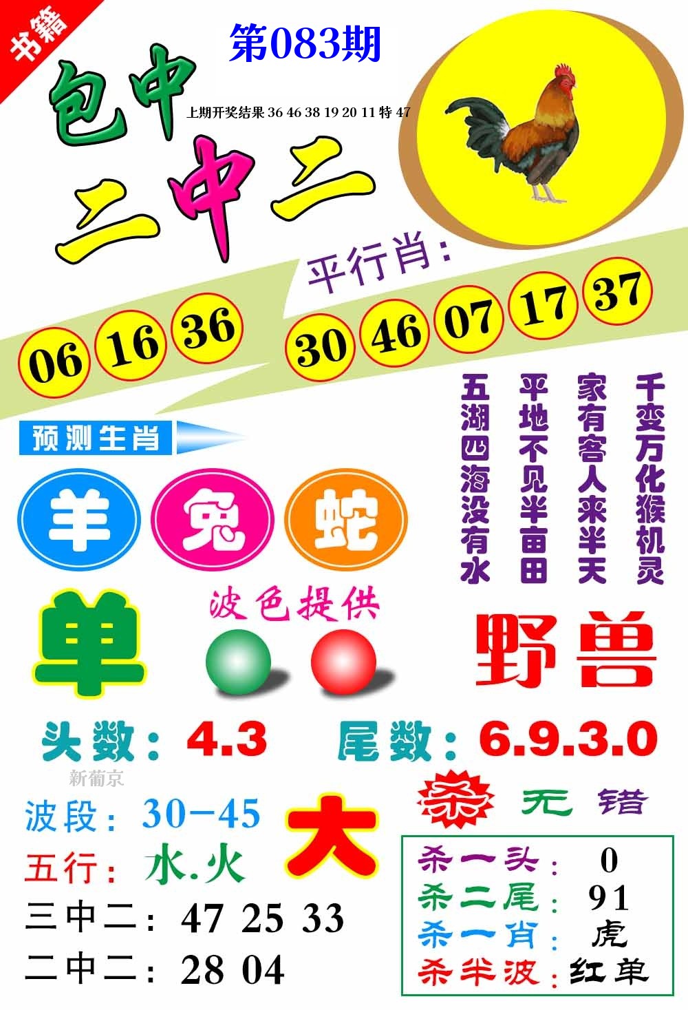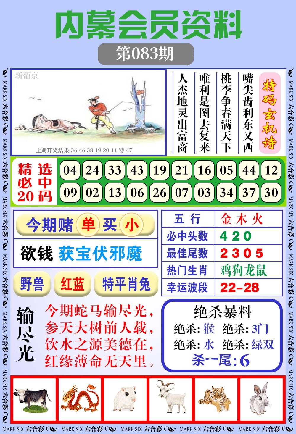 | 083期 | 兔 | 6尾 | 1头 | 绿单 | 开?00准 |