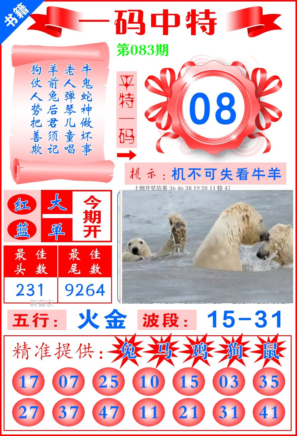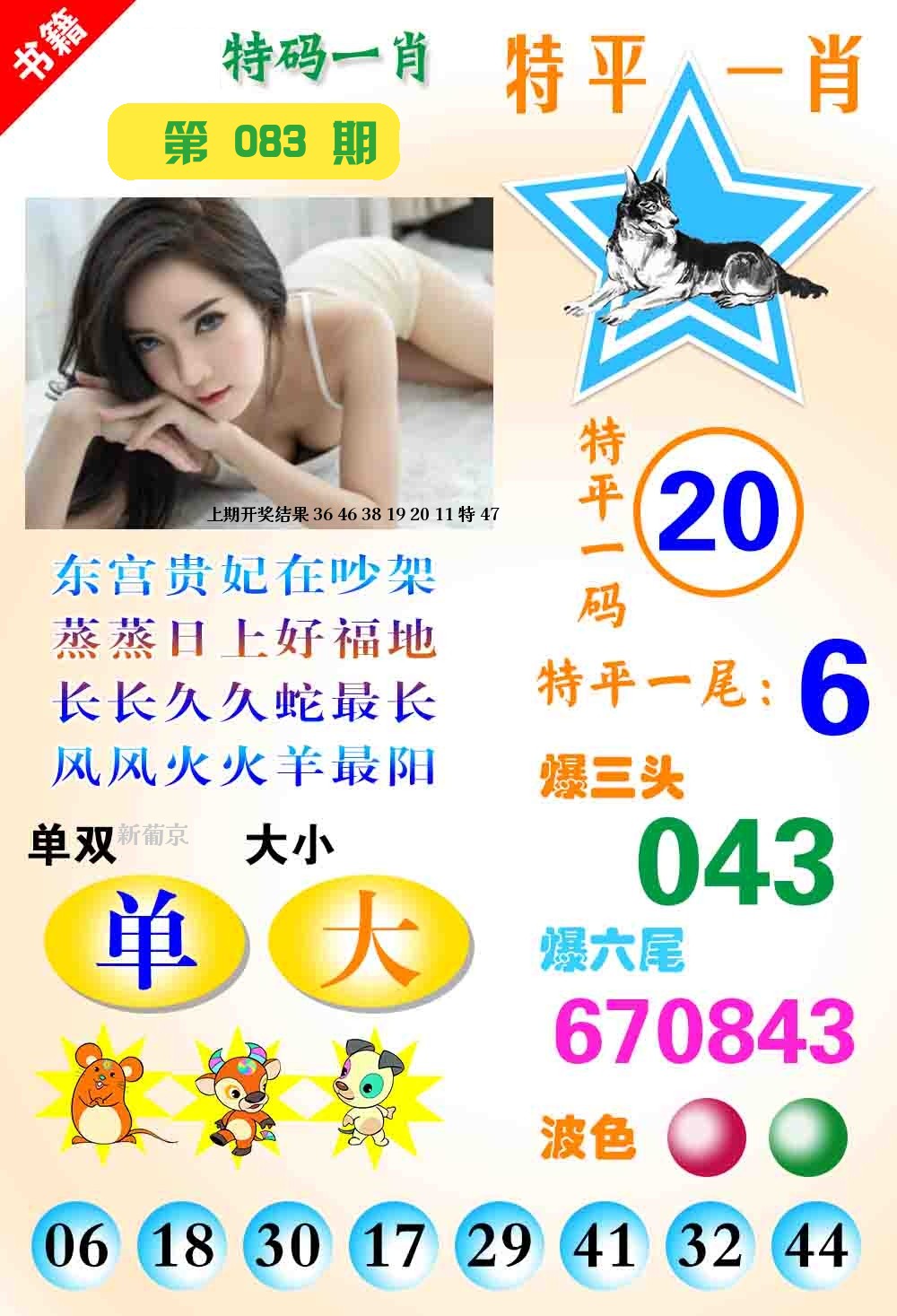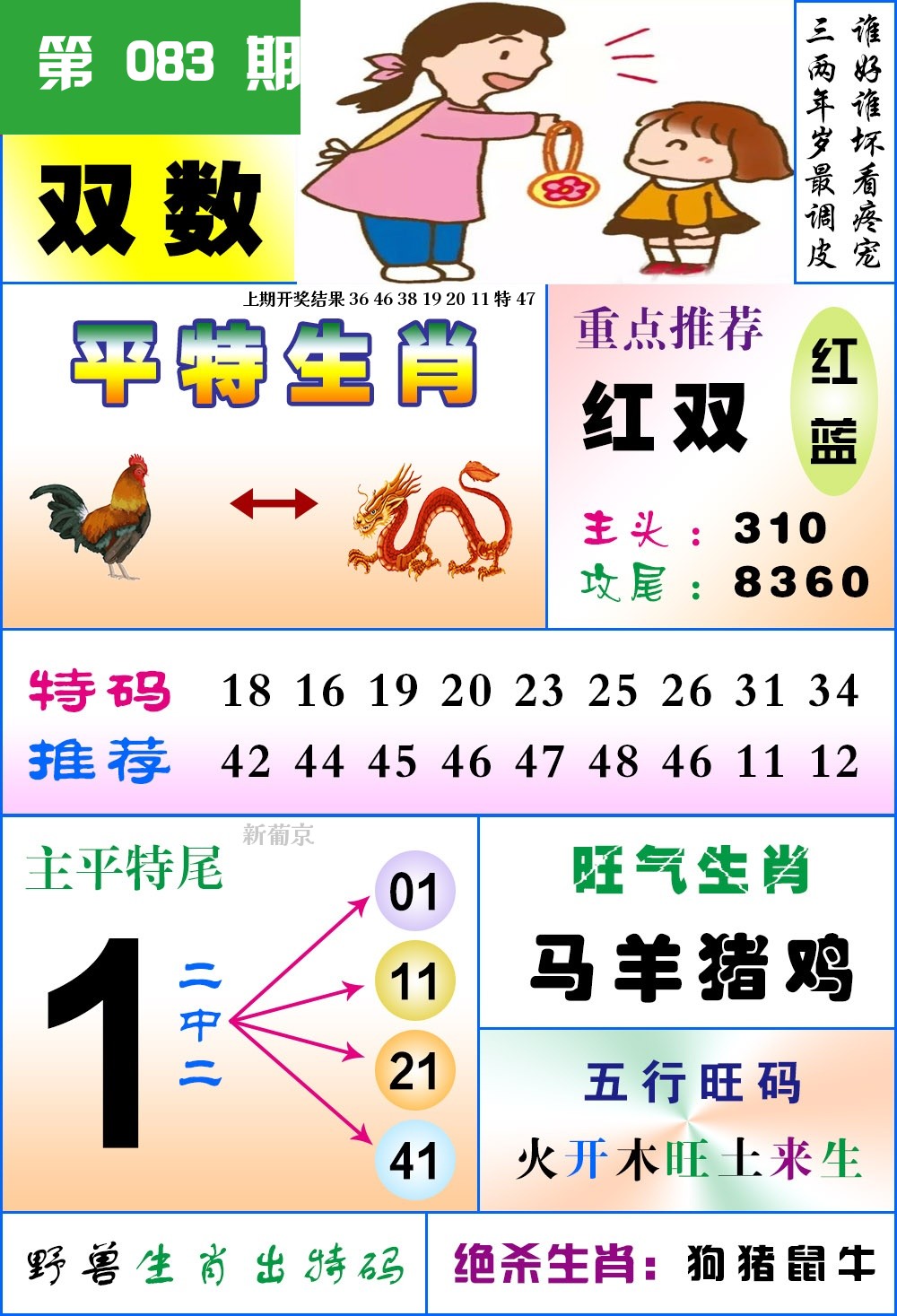 | 083期 | 兔 | 6尾 | 1头 | 绿单 | 开?00准 |