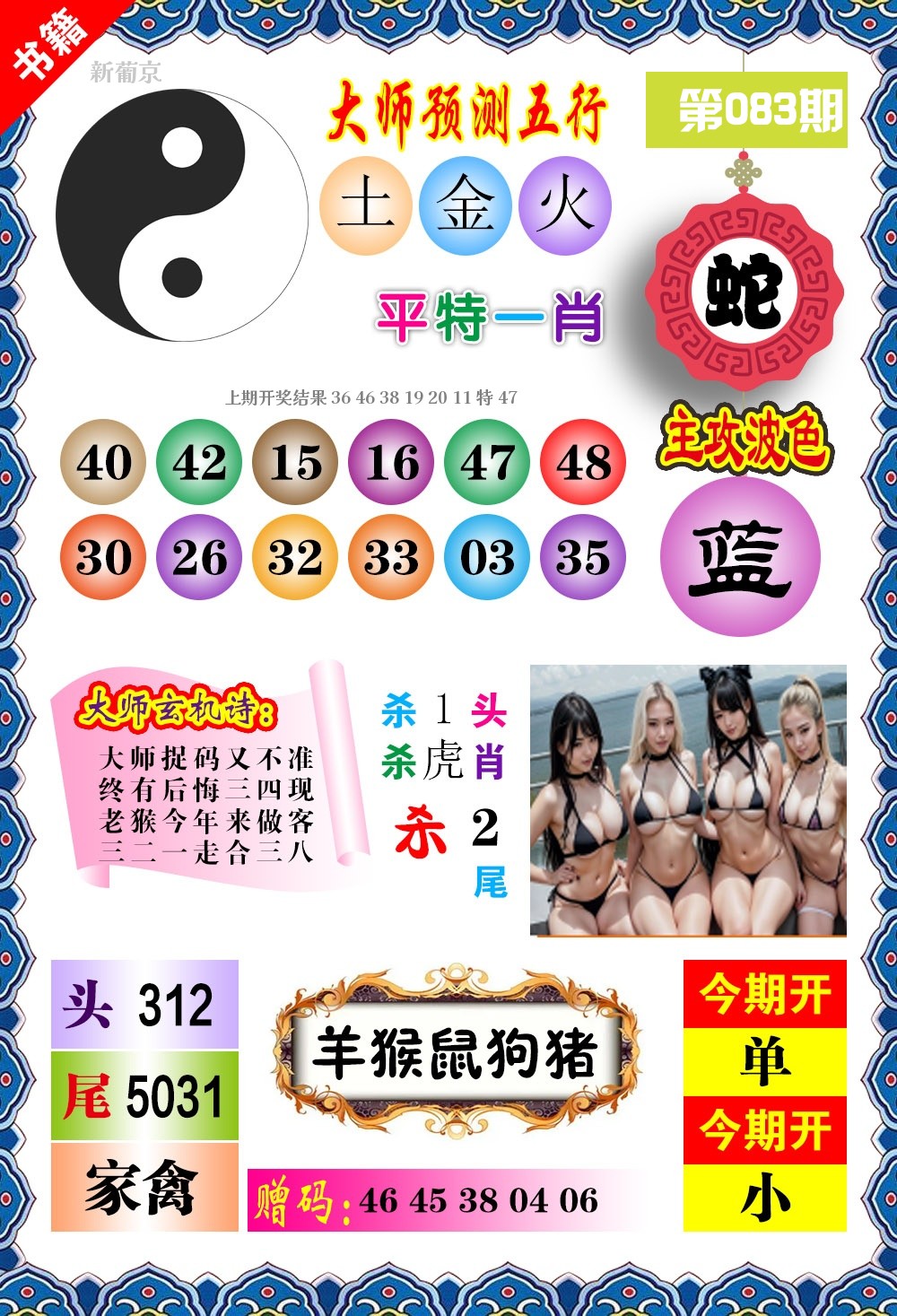 | 079期三码 | 36,03,38 | 开蛇26 |